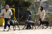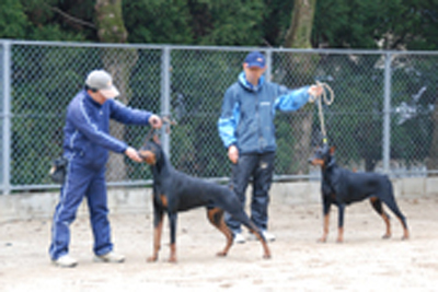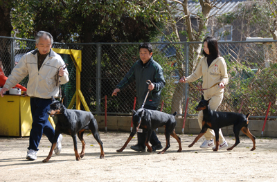当訓練所では毎月「ドーベルマンの集い」をやっております。 現在ドーベルマンを飼っている方や今からドーベルマンを飼おうと思ってる方が集まり、日々の管理やフードの選び方など情報交換をしております。 また展覧会前は毎週ハンドラーの練習をやっております、 興味のある方は見学をどうぞ。