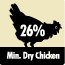 「生肉」?それとも「乾燥肉」? 原材料の表記「乾燥鶏肉」「乾燥子羊肉」と「鶏肉」「子羊肉」には大きな違いがあります。違いは何でしょうか?第一原料に「鶏肉」や「子羊肉」と記載されていることがありますが、実際には何を意味するのでしょうか。生の鶏肉や子羊肉の重量の最大75%は水分と脂肪ですが、これらは加工中に取り除かれてしまう為、第一原料として記載されている場合、もはや「鶏肉」「子羊肉」は第一原料ではなくなってしまいます。違いは水分と脂肪なのです! さらに言えば、生肉を使用した場合、完成した商品の総タンパク質のうち、鶏肉、子羊肉が占める割合はわずかです。原料表示を見れば、その商品がはっきりと分かります。ライトとシニア商品を除く全てのニュートロ ナチュラルチョイス ドッグフードは、本物の乾燥鶏肉、乾燥子羊肉が第一原料です。